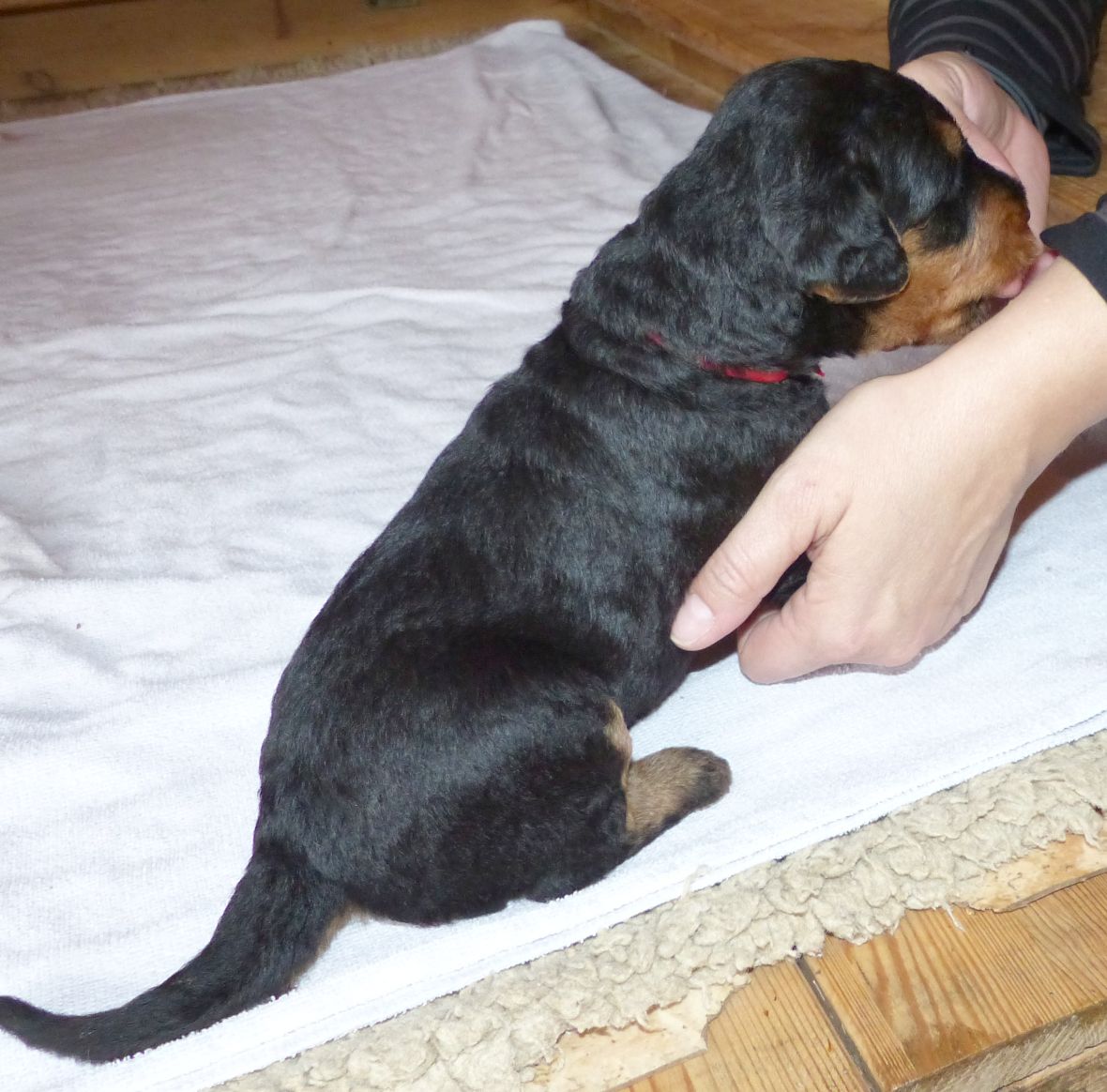Die erste Pediküre haben die Welpen jetzt auch schon hinter sich. Die Krallen