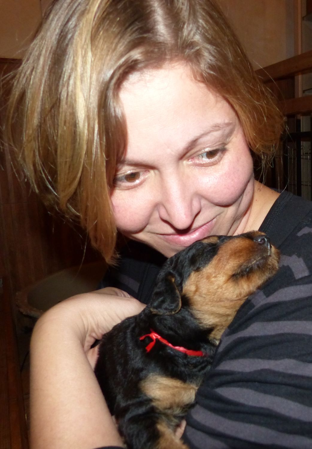 Im Welpenraum auf dem Boden sitzen. Die Kleinen um mich herum, sie beobachten